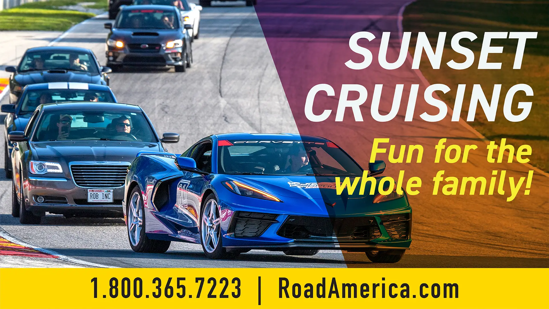 Sunset Cruise at Road America is a leisurely, low-speed, 3-lap experience of the iconic 4-mile track with your own vehicle. It is the perfect opportunity to experience one of the premier road courses in the country. This relaxing on-track opportunity is bucket list experience for locals and fans world-wide!